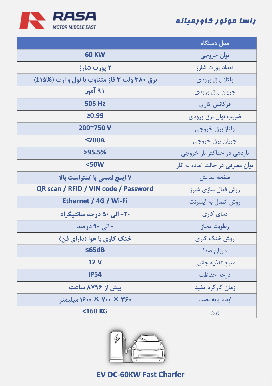 شارژر خودرو برقی سریع ۶۰ کیلووات دارای دو پورت